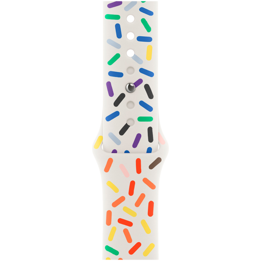 Featuring a joyful design, the Pride Edition Sport Band incorporates a full range of vibrant colours to celebrate the beauty and diversity of the LGBTQ+ community. In addition to the colours of the core Pride flag, black and brown symbolise marginalised LGBTQ+ communities of colour, as well as those impacted by HIV/AIDS. Light blue, pink and white honour trans and non-binary people.