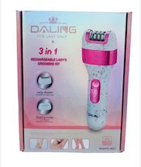 Daling 3 in 1 Rechargeable Ladies Grooming KitDaling 3- in-1 Rechargeable Ladies Grooming Kit - is a versatile and convenient tool designed for women's personal care. It includes three interchangeable heads: a hair remover for smooth skin, a head shaver for precise trimming, and a heel smoother for exfoliating and softening rough foot skin.Availability: 10000 in stockSKU: CSY-DL6037 R301,28 Qty: Add to cart Ship toSelect countrySouth Africa *Other *Shipping MethodNameEstimated DeliveryPriceNo shipping optionsApply Custom wishlist OKAdd to wishlistAdd to compare listEmail a friendDaling 3- in-1 Rechargeable Ladies Grooming Kit - is a versatile and convenient tool designed for women's personal care. It includes three interchangeable heads: a hair remover for smooth skin, a head shaver for precise trimming, and a heel smoother for exfoliating and softening rough foot skin.