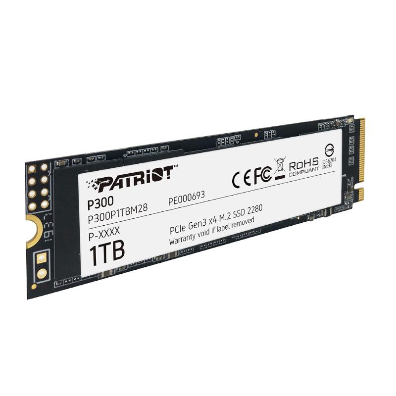 Patriot P300 1TB M.2 PCIe NVMe SSDBoost your computer’s performance with quicker application loading times while transferring heavy workloads with the Patriot P300 1TB M.2 PCIe NVMe SSD. It features a high-speed PCIe NVMe interface, 1TB capacity, a 2280 M.2 form factor, HMB technology and NANDXtend ECC technology.Manufacturer: Patriot Availability: 172 in stockSKU: P300P1TBM28 R3 909,08 Qty: Add to cart Ship toSelect countrySouth Africa *Other *Shipping MethodNameEstimated DeliveryPriceNo shipping optionsApply Custom wishlist OKAdd to wishlistAdd to compare listEmail a friendThe P300 is Patriot’s next generation of mid-tier PCIe gen 3x4 NVMe SSD to hit the market, offering 25% higher transfer speeds and IOPs than standard PCIe 3x2 solutions. The compact m.2 form factor is designed for easy installation and will fit into any PC or laptop, while its low power consumption helps extend laptop battery life. The P300 is guaranteed to improve start-up, loading, and transfer times over traditional hard disk drives.The P300’s advanced firmware offers ECC technology and end-to-end data path protection to ensure data integrity throughout the life of the drive. Advanced wear-levelling and thermal management features extend the life of the drive for maximum use.FEATURES:High-speed PCIe NVMe SSD1TB CapacityBuilt with the latest PCIe 3 x 4 controller2280 M.2 PCIe Gen3 x 4, NVMe 1.3HMB technologyNANDXtend ECC technologySPECIFICATIONS:Type: M.2 PCIe NVMe SSDCapacity: 1TBPower Consumption: Full: 2.07W Idle: 0.37WTBW: 320TB4K Aligned Random Read: up to 290K IOPs4K Aligned Random Write: up to 260K IOPsSequential Read (ATTO): up to 2,100MB/sSequential Write (ATTO): up to 1,650MB/sSequential Read (CDM): up to 2,100MB/sSequential Write (CDM): up to 1,650MB/sO/S Supported: Windows® 7*/8.0*/8.1/10 (*May require drivers)Dimensions: 8 x 2.2 x 0.38 cmWeight: 9 gWHAT'S IN THE BOX:Patriot P300 1TB M.2 PCIe NVMe SSD x1